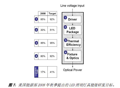 LED 驅(qū)動器本身也在不斷演進(jìn), 著重于進(jìn)一步提高能效、 增加功能及功率密度。 美國“能源之星”的固態(tài)照明規(guī)范提出的是照明器具級的能效限制,涉及包括功率因數(shù)在內(nèi)的特定產(chǎn)品要求。而歐盟的IEC 61347-2-13 (5/2006)標(biāo)準(zhǔn)針對采用直流或交流供電的LED模塊的要求包括: