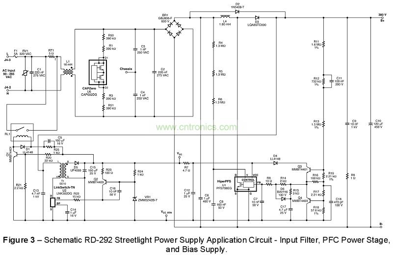Power Integrations推出適用于 LED 街燈和其它工業(yè)/基礎(chǔ)建設(shè)照明系統(tǒng)的 150 W、48 V 電源供應(yīng)器參考配套設(shè)計(jì)。該設(shè)計(jì)組合了PFS功率系數(shù)級和LCS輸出級,輸入電壓90 VAC - 265 VAC,100%負(fù)載和50%負(fù)載時(shí)的功率系數(shù)大于0.9。本文介紹了PFS704-729EG HiperPFS系列產(chǎn)品亮點(diǎn),方框圖,多種應(yīng)用電路以及90 VAC - 265 VAC輸入48V/150W LED街燈照明參考設(shè)計(jì)主要指標(biāo),電路圖和材料清單于PCB布局圖。