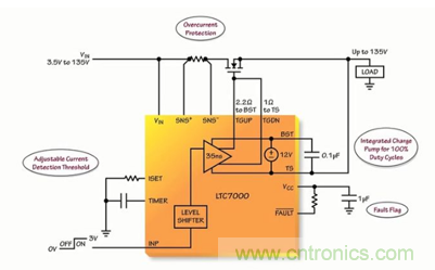 ADI 電源產(chǎn)品組的設(shè)計工程師 Mark Mullen 就上述問題為大家分享了一個基于LCT7000受保護的高壓側(cè)驅(qū)動器解決方案。