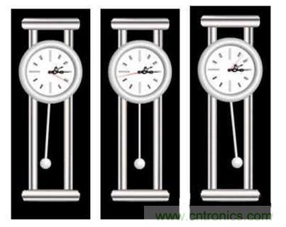 最后由于摩擦的作用,任何物理振蕩都會停止。要繼續(xù)運(yùn)動,必須在每次循環(huán)中添加少許能量。在擺鐘里,保持鐘擺移動的能量來自彈簧。鐘擺在每次敲鐘時(shí)都得到一點(diǎn)推力,以彌補(bǔ)因摩擦而失去的能量。