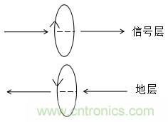 如何用右手定則來解釋信號(hào)層與地層相鄰時(shí)磁通對(duì)消效果,解釋如下: