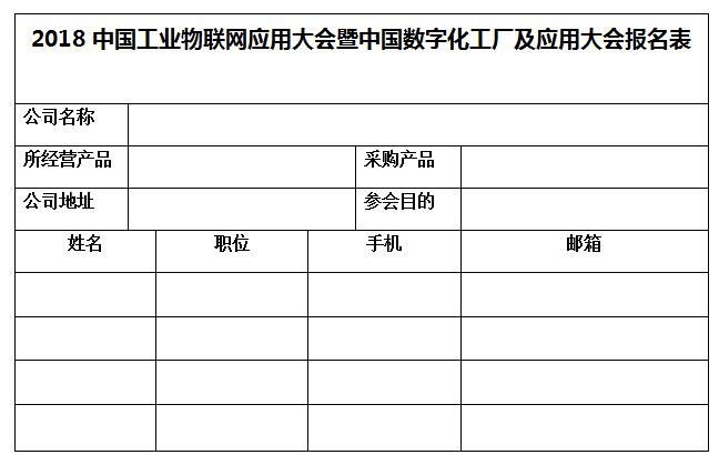 2018中國工業(yè)物聯(lián)網(wǎng)應(yīng)用大會暨中國數(shù)字化工廠及應(yīng)用大會報名表