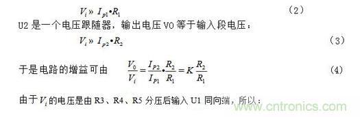 U1構(gòu)成一個負反饋放大器,其同相輸入端和反相輸入端的電壓應(yīng)近似相等,滿足: