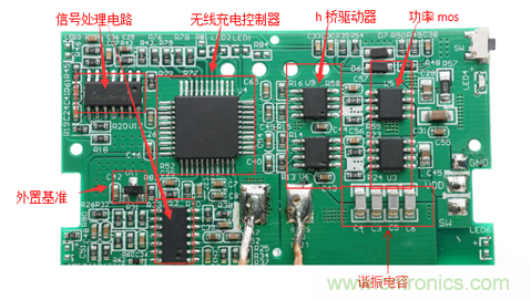 這種SoC方案下,PCB上只有一顆大芯片,和兩個MOS管,相當(dāng)簡潔。SOC內(nèi)部集成了無線充電驅(qū)動,H橋驅(qū)動器,運(yùn)放,內(nèi)置溫度保護(hù)功能等,一顆芯片實現(xiàn)所有功能,可有效控制成本和精簡生產(chǎn)流程。