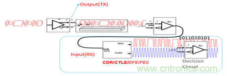 【導讀】在用戶進行系統(tǒng)或者芯片測試的時候,一般主要驗證幾個方面的性能和可靠性,包括系統(tǒng)發(fā)送端的信號質(zhì)量,鏈路的損耗/串擾,接收端的容限。如下圖1,一個鏈路系統(tǒng)的基本架構(gòu)。通常在發(fā)送端會使用FFE來補償鏈路的損耗,接收端會采用DFE/FFE等方法來進行均衡,一些比較高速率的標準如PCIE 4.0/5.0,SAS4等還會采用FEC來進行糾錯,當然接收端還需要CDR來從串行信號里面進行時鐘恢復得到同步時鐘來對信號進行采樣。