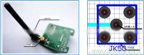 2.4G棒狀藍牙天線體積大,但傳輸距離要強于其他天線。在PCB設計時,天線周圍也和上述的三種天線設計一樣要凈空。如下圖: