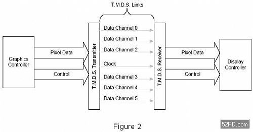 資料和時脈頻率不同的原因在于資料以稱作圖元的10位元資料包發(fā)送。對解析度要求低于每秒165萬圖元的視頻顯示器而言,單一鏈路連接已經(jīng)足夠;假若清晰度要求在每秒165萬和350萬圖元之間,可使用第二條鏈路并行發(fā)送資料。由于兩條鏈路共用一個時脈對,因此最大的時脈頻率始終為165 MHz。圖2顯示了基本的雙鏈路架構,并可供單鏈路或雙鏈路連接使用。