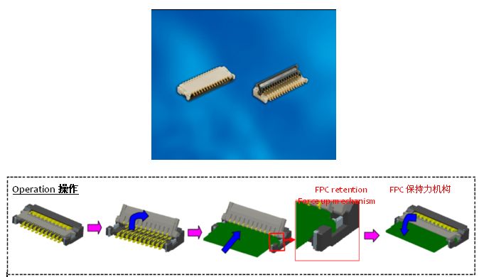 0.2毫米間距,0.9毫米高度FPC 零插入力連接器