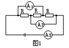 如圖1所示,三個電阻的阻值相等,電流表A1、A2和A3的內(nèi)電阻均可忽略,它們的示數(shù)分別為I1、I2和I3,則I1:I2:I3=______:______:______.