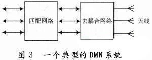 為了提高天線的輻射效率,學(xué)者們提出了DMN技術(shù),即在多個(gè)天線的輸入端先加耦合器以去掉天線之間的耦合,然后加匹配網(wǎng)絡(luò),如圖3所示。文獻(xiàn)對這種方法進(jìn)行了詳細(xì)論述,并闡述了用S參數(shù)分析正交模的方法。下面對一個(gè)二端口網(wǎng)絡(luò)的天線進(jìn)行S參數(shù)的分析。