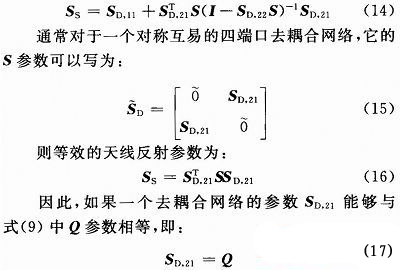 對于一個(gè)雙天線系統(tǒng),應(yīng)該有兩個(gè)正交模同時(shí)存在,去耦合網(wǎng)絡(luò)是一個(gè)四端口網(wǎng)絡(luò),正交輻射矩陣可以寫為: