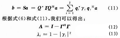 則Q矩陣的第i列qi就稱為天線陣列的正交模式。|ai|2表示第i個(gè)端口的入射功率;|mi|2表示第i個(gè)正交模式的激發(fā)功率。由于Q的幺正性,有|a|2=|m|2,這就保證了入射總功率等于激發(fā)起的正交??偣β省6?lambda;i則反應(yīng)了正交模式的輻射效率。