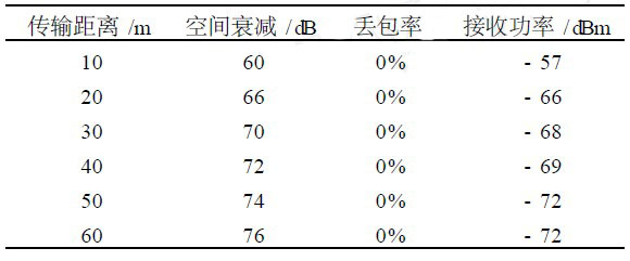 ①無障礙狀態(tài)下,隨著距離的增加,數(shù)據(jù)丟包率、接收功率和自由空間衰減的變化情況;