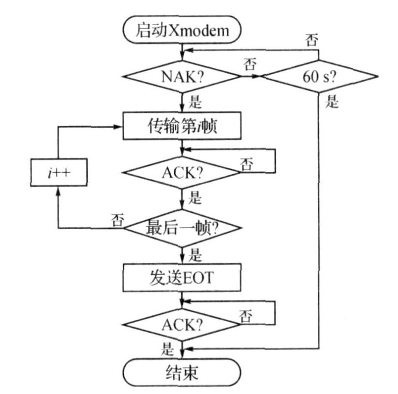 Xmodem協(xié)議的開始標(biāo)志是文件接收方發(fā)出"NAK"字節(jié),文件發(fā)送方在收到該信號(hào)后發(fā)送數(shù)據(jù)幀,雙方開始正常通信過程?;赬modem協(xié)議上傳圖片的流程如圖4所示。