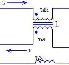 圖1所示的是共模電感的濾波電路,Tr2a和Tr2b就是共模電感L的兩個(gè)線圈。這兩個(gè)線圈繞在同一磁芯上,匝數(shù)和相位都相同。這樣,當(dāng)電路中流過電流ia和ib的大小相同、方向相反時(shí),電流在同相位繞制的電感線圈中產(chǎn)生反向的磁場(chǎng)而相互抵消,磁芯中沒有交變的磁通量產(chǎn)生。