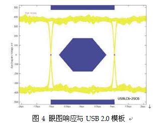 還有一種方法可以檢查這個(gè)軌對軌保護(hù)元器件對USB協(xié)議正常工作模式的影響,就是通過圖4的眼圖響應(yīng)來分析信號數(shù)據(jù)位的完整性。