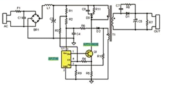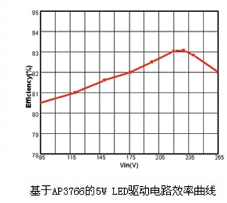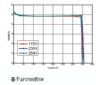 2. AP3766采用專有的“亞微安啟動電流”技術(shù),僅需0.6μA的啟動電流,因此降低了啟動電阻R1和R2上的功耗,提高了系統(tǒng)效率。典型5W應(yīng)用效率大于80%,空載功耗小于30mW。