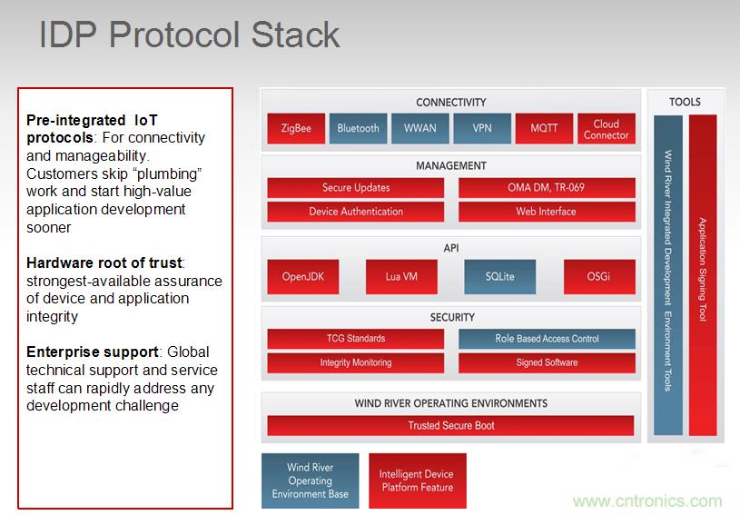 當下物聯(lián)網(wǎng)面臨了三大挑戰(zhàn):連接、安全以及管理(數(shù)據(jù)的管理與分析),此外還存在新舊設(shè)備交替的過渡期,而Gateway是讓傳統(tǒng)設(shè)備實現(xiàn)聯(lián)網(wǎng)的最佳方式(如電表),蘇建豪如是說。風河在Gateway中提供了IDP,是一個物聯(lián)網(wǎng)平臺,廠商可以在上面自己做開發(fā),而不需要再下功夫去考慮連接、安全等問題,有效節(jié)省開發(fā)時間。