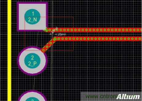 在PCB規(guī)則定義中,比如要對(duì)一塊特定的區(qū)域采用不同的規(guī)則,那么Room是解決這類問題的首選。首先用Room框出這一塊特定區(qū)域并命名為Room1。然后在規(guī)則定義里選擇WithinRoom(''Room1'') ,之后可以為這個(gè)Room里的對(duì)象設(shè)置各種規(guī)則。比如下圖所示,線寬規(guī)則全部違反了最小線寬設(shè)定值,所以都有綠色高亮顯示。然后為右邊的區(qū)域框選了Room1,分別為其設(shè)置了較寬的線寬值10mil,那么Room里的線寬符合規(guī)則定義,已經(jīng)顯示正常,沒有綠色高亮違規(guī)顯示了。但同一根網(wǎng)絡(luò)的導(dǎo)線中,Room之外的仍然綠色高亮顯示違規(guī)。這就是Room單獨(dú)設(shè)置規(guī)則的作用。