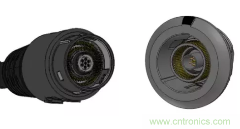 這個標(biāo)準(zhǔn)的高密度(79PIN)連接器有一個外徑為45毫米的金屬外殼、一個螺紋、鎖緊聯(lián)接螺母、一個防水密封圈和1.6mm的爬電/間隙尺寸。它的額定溫度為175℃,循環(huán)使用壽命高。在評估這一標(biāo)準(zhǔn)連接器時,設(shè)計(jì)者應(yīng)該考慮這種非被動螺釘聯(lián)軸器是否是適用于特定應(yīng)用的正確的鎖定機(jī)構(gòu)。