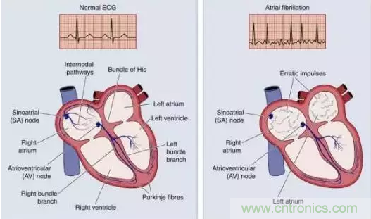 這種心律失常稱之為心房顫動(AFibrilation,AFibrilation,房顫),這是左心房和/或右心房(即心臟兩個上腔)的正常心跳異常。AFib會破壞心房和心室(即心臟的兩個下腔)之間的正常血流,并增加四至五倍中風(fēng)的風(fēng)險,因?yàn)樗菀仔纬裳?。事?shí)上,AFib在血管里由凝塊或脂肪斑塊沉積引起的缺血性中風(fēng)中占的比例達(dá)到15-20%。僅在美國,就有270萬和610萬人估計(jì)有AFib,預(yù)計(jì)這一數(shù)字隨著美國人口老齡化而增加,因?yàn)榧s2%的65歲以下的人和約9%的65歲以上的或更老的人患有AFib。