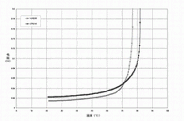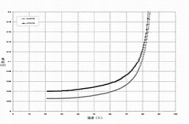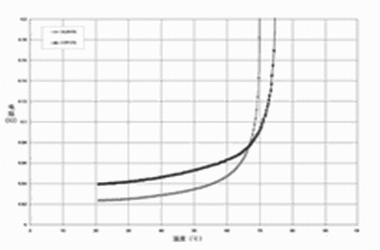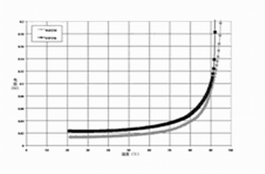 圖2 針對(duì) PolySwitch SRP,VTP及VLR聚合物的PTC材料使用的無(wú)源阻抗 vs, 溫度曲線(xiàn)