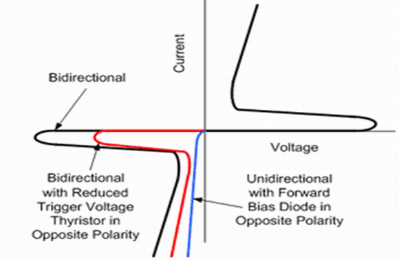 - 使用TSPD可解決簡單晶閘管不對稱保護特性的缺陷