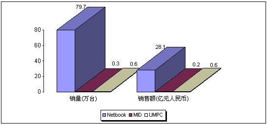 - 2008年Netbook市場(chǎng)銷售量為79.7萬(wàn)臺(tái),銷售額達(dá)到28.1億元