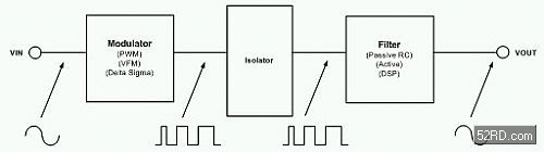 光耦合器多年來都是本質(zhì)安全型系統(tǒng)(intrinsicallysafesystem)的主要隔離元件。模擬光耦合器可將模擬信號傳送通過隔離層,這些光耦合器只要傳輸速率在100kbps以下就具有成本相對較低的優(yōu)勢。不幸的是,光耦合器會佔用很大的空間(每個封裝通常只能提供一個通道,還需要多顆離散元件支援),資料產(chǎn)出也相當有限(最多僅數(shù)十個Mbps)。更糟的是,光耦合器需要多顆離散零件與它搭配,其效能還會隨著環(huán)境溫度的增加而下降。