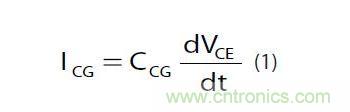 在半橋拓撲中,當上管IGBT(S1)正在導通, 產(chǎn)生變化的電壓dV/dt加在下管IGBT(S1)C-E間。電流流經(jīng)S2的寄生米勒電容CCG 、門極驅(qū)動電阻RG 、內(nèi)部集成門極驅(qū)動電阻RDRIVER ,如圖1所示。電流大小大致可以如下公式進行估算: