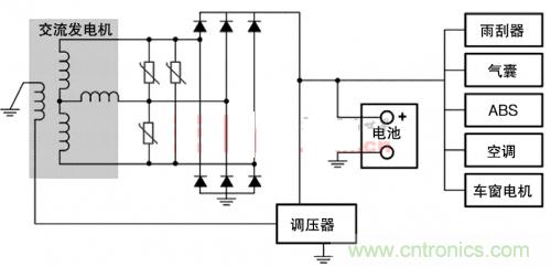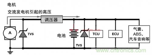 現(xiàn)代汽車設(shè)計中,所有車載電子設(shè)備都要連接電池和交流發(fā)電機。交流發(fā)電機是電氣瞬態(tài)的主要來源,其中最 糟的是拋負載。這種情況發(fā)生在電池已經(jīng)斷開而交流發(fā)電機正在發(fā)電、其他負載還在交流發(fā)電機環(huán)路上時。如果置之不理,電氣尖峰和瞬態(tài)將沿著電線傳遞,導(dǎo)致個別電子設(shè)備和傳感器故障,或永久損壞汽車的電子系統(tǒng)。當(dāng)然,拋負載失控還會威脅車輛本身的安全性和可靠性。