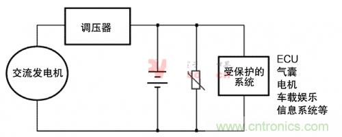 圖3.MOV對汽車子系統(tǒng)供交流發(fā)電機瞬態(tài)保護