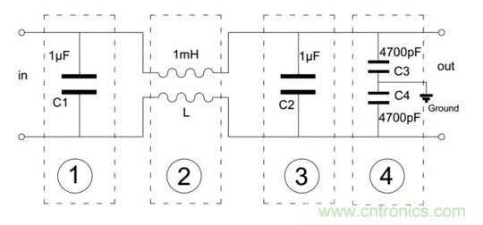 (6)在外部電纜的連接處應(yīng)該放置輸入輸出濾波器,任何在沒有屏蔽系統(tǒng)內(nèi)部的導(dǎo)線連接處都需要濾波,因為存在天線效應(yīng)。另外,在具有數(shù)字信號處理或開關(guān)模式的變換器的屏蔽系統(tǒng)內(nèi)部的導(dǎo)線連接處也需要濾波。