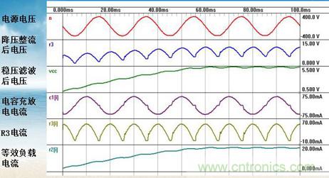 電容器實際上起到一個限制電流和動態(tài)分配電容器和負載兩端電壓的角色。