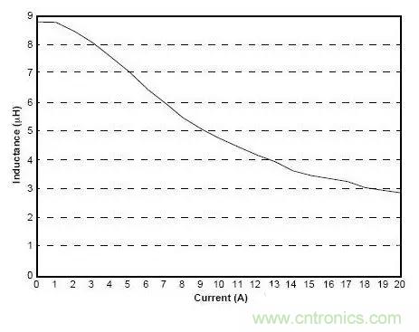 注意:電感量下降在很多類的電感中都會(huì)存在。例如:toroids,gapped E-cores等。但是,rod core電感就不會(huì)有這種變化。