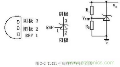 TL431是由德州儀器生產(chǎn)的可控精密穩(wěn)壓源,實物如圖2-3所示。它的輸出電壓用兩個電阻就可以任意的設置到從2.5V到36V范圍內的任何值。該器件的典型動態(tài)阻抗為0.2Ω,在很多應用中用它代替穩(wěn)壓二極管,例如,數(shù)字電壓表,運放電路,可調壓電源,開關電源等。圖2-2所示為TL431引腳排列與使用連線圖。