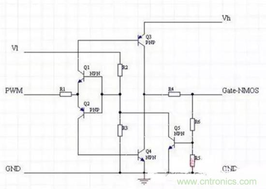 在這三種情況下,圖騰柱結(jié)構(gòu)無(wú)法滿足輸出要求,而很多現(xiàn)成的MOS驅(qū)動(dòng)IC,似乎也沒(méi)有包含gate電壓限制的結(jié)構(gòu)。