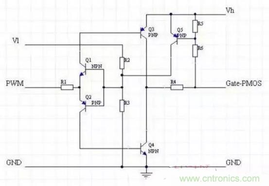 2,用小幅度的PWM信號(hào)驅(qū)動(dòng)高gate電壓需求的MOS管。