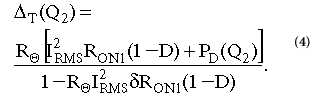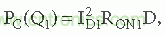 其中I D是漏極電流,R ON是制造商規(guī)定的標(biāo)稱環(huán)境溫度下的溝道電阻,D是Q 1的占空比。