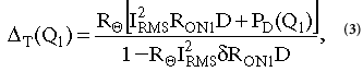 其中δ是R ON的溫度系數(shù),單位為°C -1,P D是動(dòng)態(tài)損耗項(xiàng),與R ON無(wú)關(guān)。