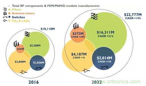 2016~2022年手機(jī)射頻前端模塊和組件市場