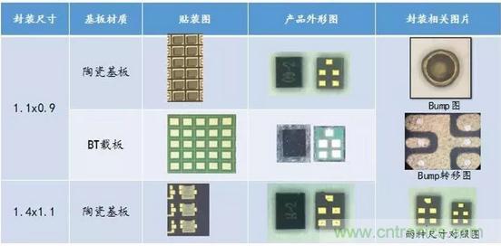 2)改進(jìn)器件的封裝形式,現(xiàn)在已經(jīng)由傳統(tǒng)的圓形金屬殼封裝改為方形或長方形扁平金屬封裝或LCCC(無引線陶瓷芯片載體)表面貼裝的形式,采用體積更小的CSP封裝形式,目前封裝尺寸已做到1.1mm x 0.9mm;