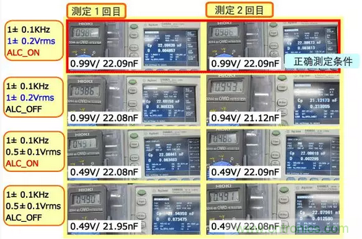 對于大容量MLCC、ALC 設(shè)置OFF時測定電壓值不滿足測定條件