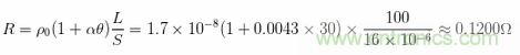 其次,我們需要知道保護(hù)性中性線電纜的電阻是多少。這個(gè)值可以根據(jù)具體線路參數(shù)來(lái)考慮。方便起見,不妨先規(guī)定這條保護(hù)性中性線電纜的長(zhǎng)度是100米,電纜芯線截面是16平方毫米,它的工作溫度是30攝氏度,則它的電阻為: