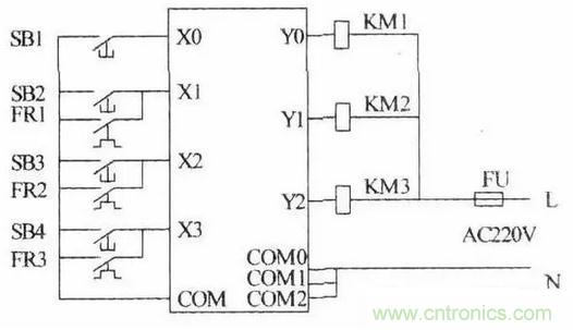 繼電器電路圖中的交流接觸器和電磁閥等執(zhí)行機構用PLC的輸出繼電器來控制,它們的線圈接在PLC的輸出端。按鈕、控制開關、限位開關、接近開關等用來給PLC提供控制命令和反饋信號,它們的觸點接在PLC的輸入端。