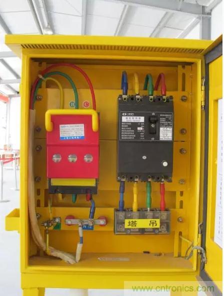 5、總配電箱的電器具備電源隔離,正常接通與分?jǐn)嚯娐?,以及短路、過(guò)載、漏電保護(hù)功能。(JGJ46-2005第8.2.2條)