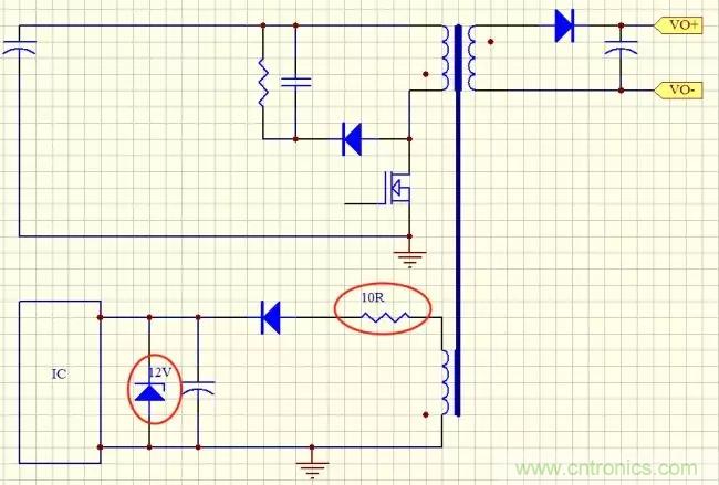但是不要忘了,上面分析的這個還是比較好的情況來分析的,我們試想一下,你的變壓器Vcc繞組上的電壓不可能設(shè)計(jì)的那么準(zhǔn),比如在輸出空載時(shí)Vcc繞組是14V,如果主輸出功率比較大,Vcc可能上升都18V,20V甚至更高,另外Vcc電壓飄跟電源功率,跟變壓器繞制工藝也有很大關(guān)系,這些都是不好把控的,調(diào)試的需要限流電阻也不一定是10Ω,所以這個方案肯定是不行的。