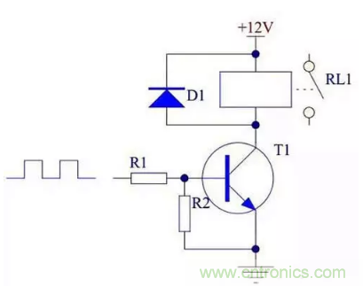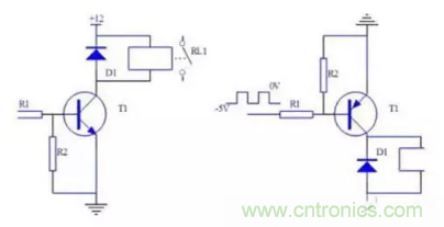 當(dāng)晶體管用來驅(qū)動繼電器時,必須將晶體管的發(fā)射極接地。具體電路如下: