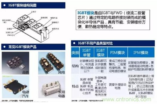 IGBT模塊是由IGBT與FWD(續(xù)流二極管芯片)通過特定的電路橋接封裝而成的模塊化半導體產(chǎn)品,具有節(jié)能、安裝維修方便、散熱穩(wěn)定等特點。