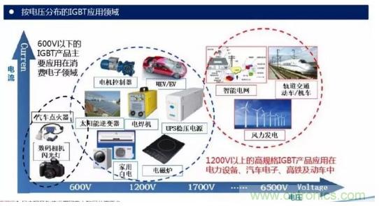 作為新型功率半導體器件的主流器件,IGBT已廣泛應用于工業(yè)、 4C(通信、計算機、消費電子、汽車電子)、航空航天、國防軍工等傳統(tǒng)產(chǎn)業(yè)領域,以及軌道交通、新能源、智能電網(wǎng)、新能源汽車等戰(zhàn)略性新興產(chǎn)業(yè)領域。